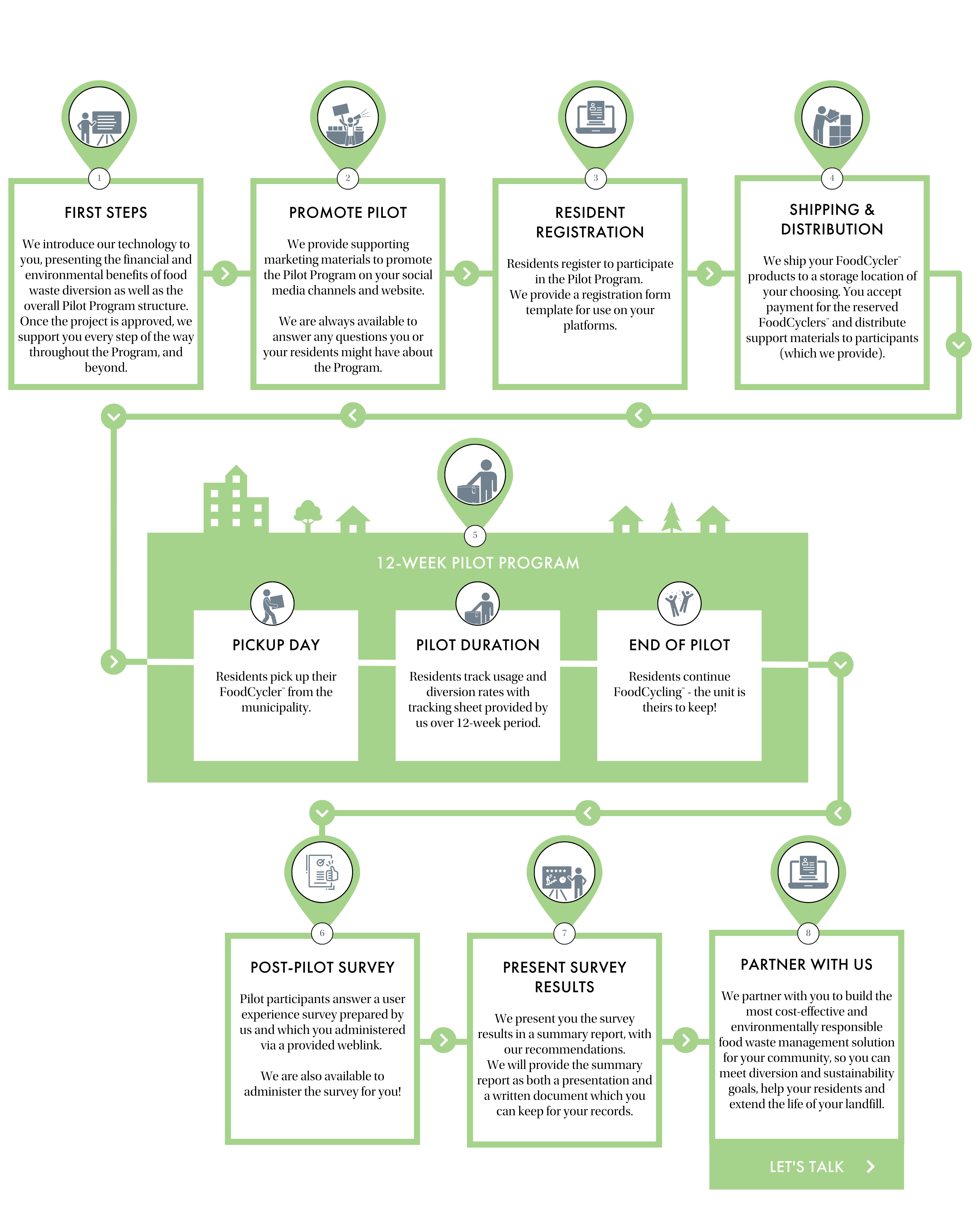 Food Cycle Science is looking to receive high-quality data from the pilot program participants regarding food waste diversion, as well as receive high-quality feedback from residents, staff, and council regarding the feasibility of a FoodCycler™ food waste diversion program for Lacmobe County and similar communities (data to be submitted to Impact Canada). It would also demonstrate the viability of the technology and solutions in a municipal setting so the model can be redeployed in other similar communities in Canada.